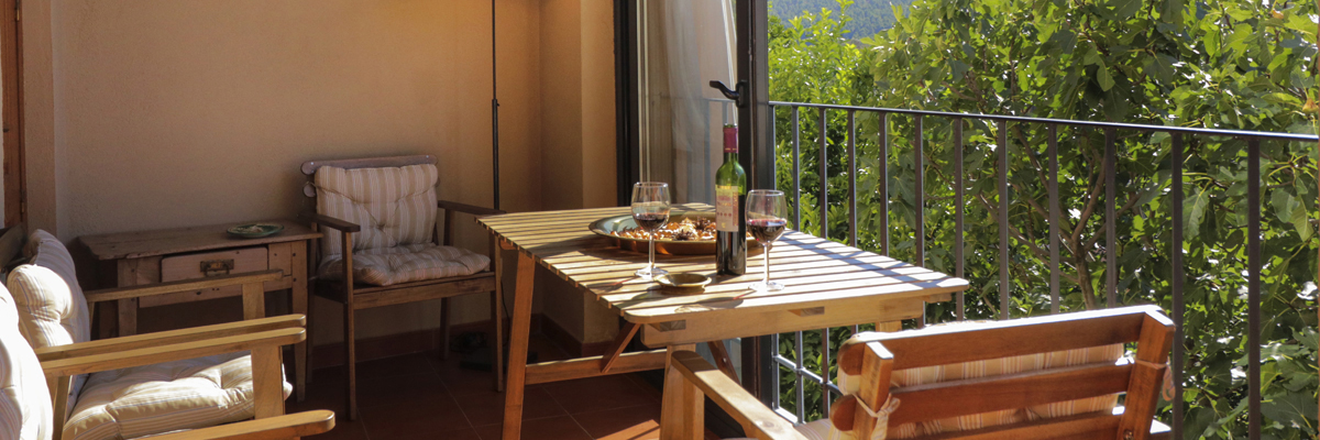 In the first floor of the whole house, we find this fully equipped apartment. Kitchen, living room with TV and fireplace, private terrace overlooking the mountains, bathroom and two bedrooms.