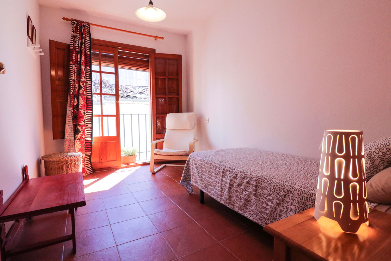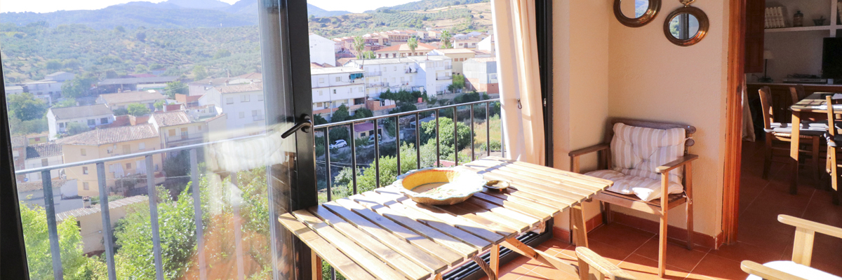 El apartamento presenta una decoración sencilla y suelo de baldosa, con dos dormitorios dobles y uno individual (con posibilidad de añadir una cama extra), terraza privada con vistas a la sierra de Guadalupe, conexión wifi gratuita y aire acondicionado. El apartamento, incluyendo cocina y baño, cuenta con todos los utensilios y comodidades necesarios para sentirse como en casa.